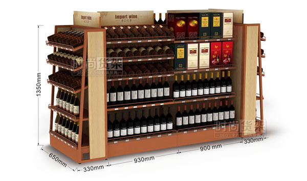 上圖所示是時尚貨架最新推出的用于陳列紅酒商品的超市紅酒貨架,雙面式結(jié)構(gòu)使其兩面皆可陳列,具有更大的商品展示面積,適合擺放在超市的中間區(qū)域,方便過往顧客更好地選購商品。