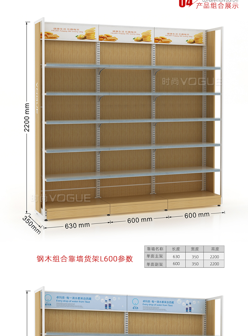 便利店貨架_木背板半木側框帶地臺