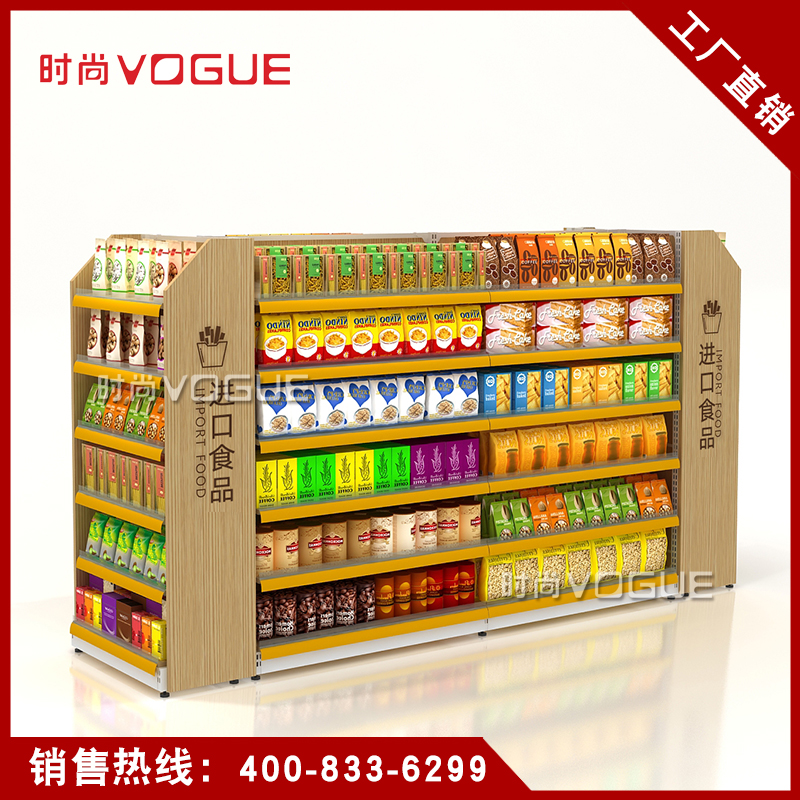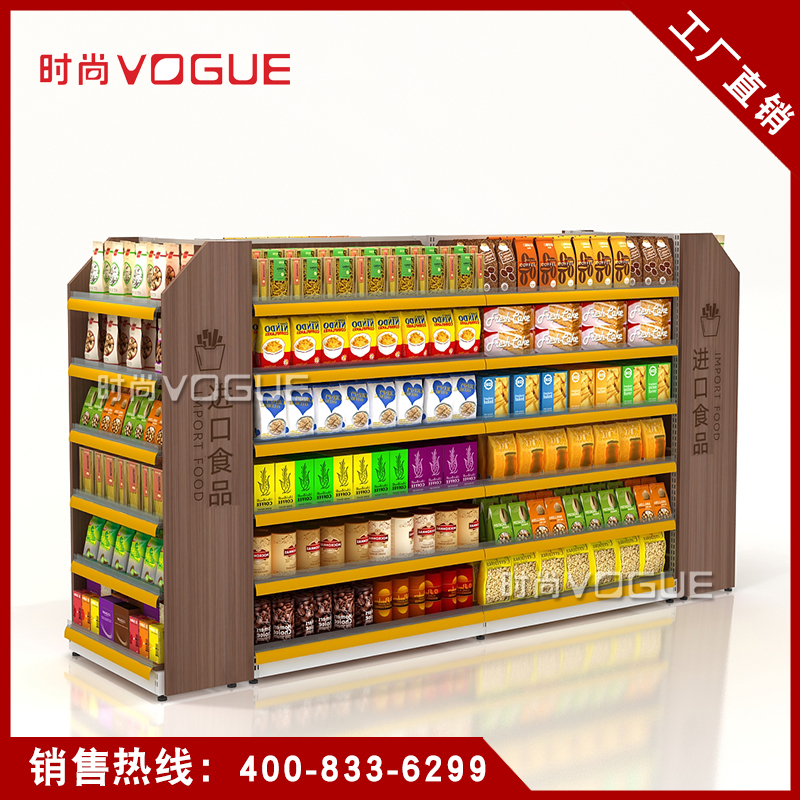 • 產品描述:便利店雙面零食貨架由深圳貨架廠時尚貨架打造,應用于便利店內的食品區域。
